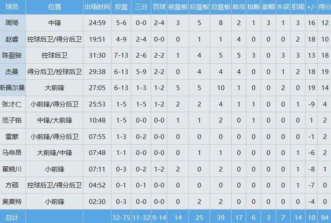 赵睿正式迎来北京队首秀,首发出战约20分钟,投篮9中4,其中三分4中2,贡献10分4助且0失误,正负值+18并列全场第二高,帮助球队84-74拿下赛季开门红。