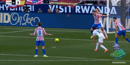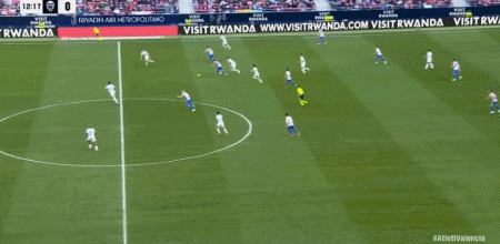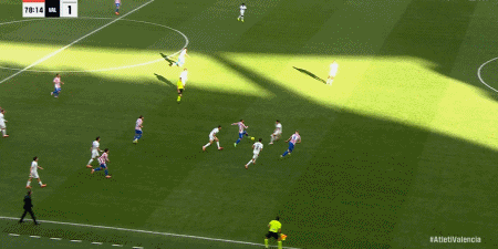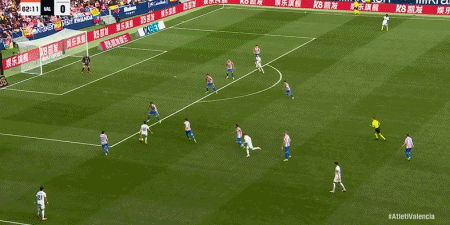 第74分钟,格列兹曼停球射门一气呵成,马竞2-1瓦伦西亚